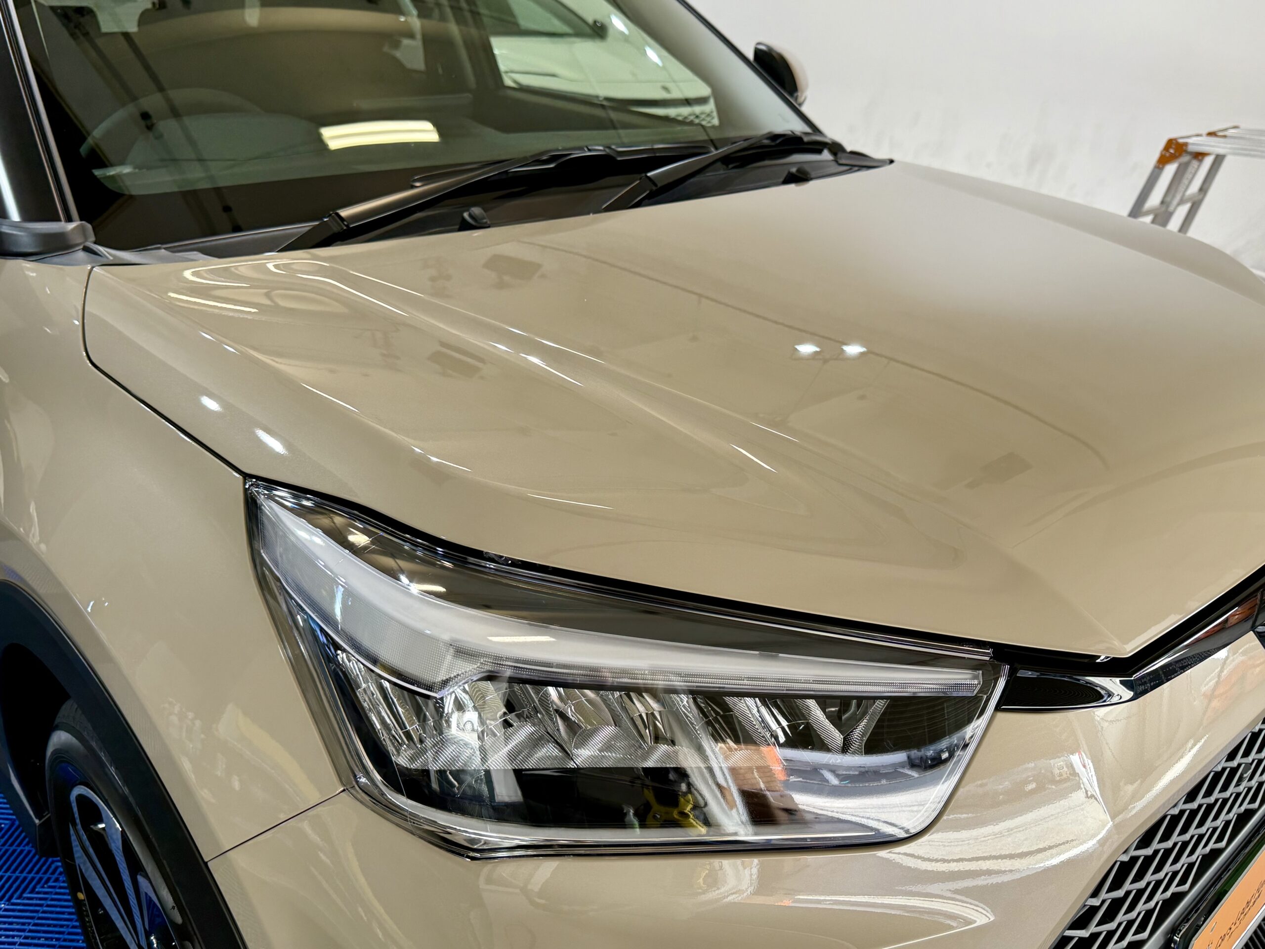 ボディ全体にガラスコーティングを施し、下地処理としてライトポリッシュを実施。さらに、ヘッドライトとウィンドウにもコ……